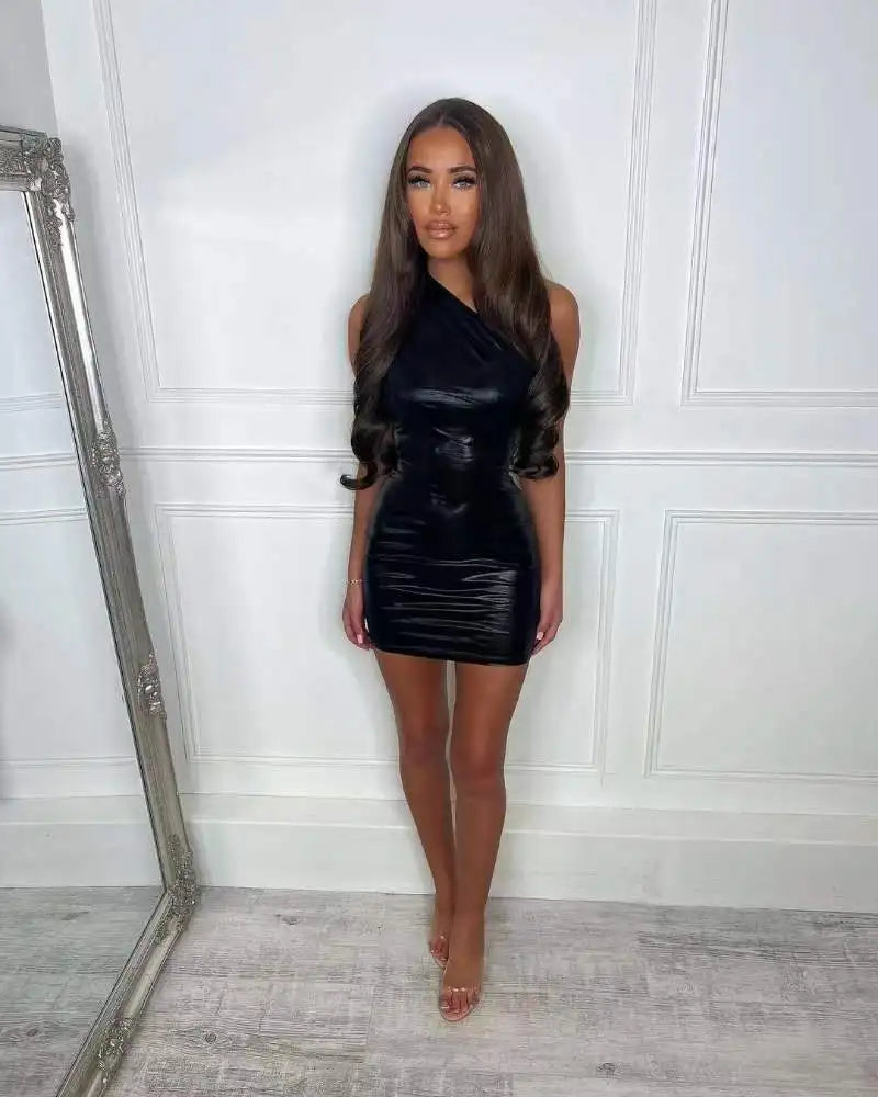 Elevate your evening look with the #136 Women Diagonal Collar Mini Dress. Featuring an asymmetric diagonal collar and a sleek mini length, this summer dress offers a blend of modern sophistication and bold style. Designed to enhance your silhouette, it pairs effortlessly with the included PU bag for a coordinated party-ready ensemble. Ideal for nightclub outings or special occasions, this dress combines comfort with an alluring, sexy edge.