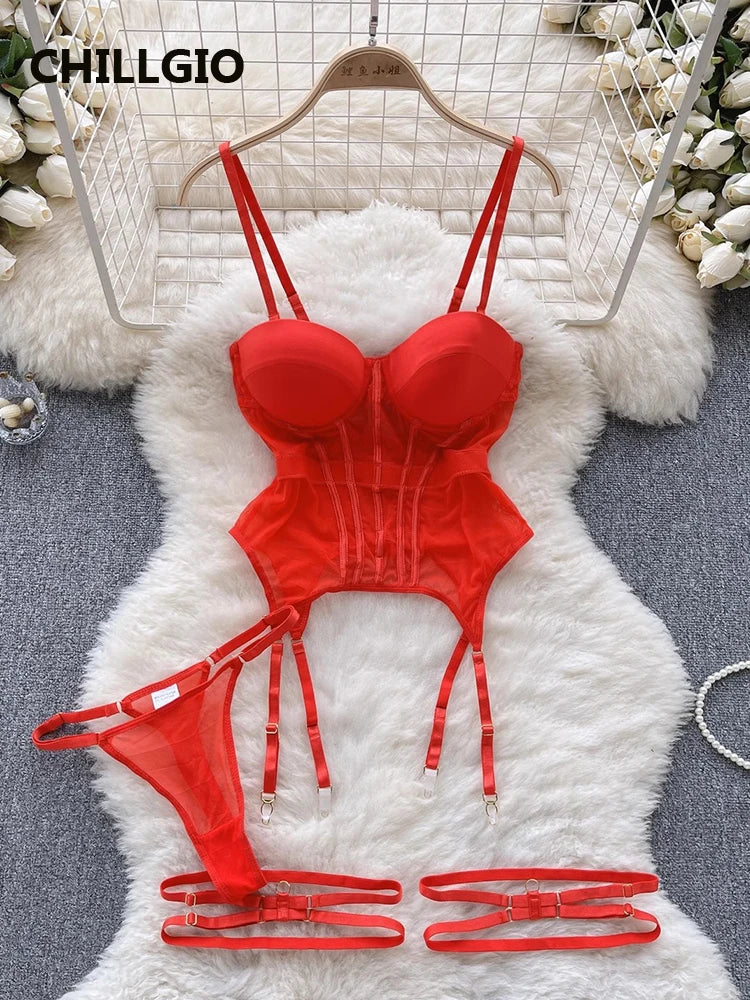 CHILLGIO Women’s sexy mesh set features a transparent bra and brief designed for a fashion-forward, erotic look. This intimate lingerie includes a bodycon fit, push-up underwire support, and delicate materials for both comfort and allure.